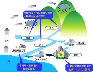 当研究室では,湖沼や河川といった自然の水循環系や都市内での水利用といった人工の水循環系を研究対象とし,地域の健全な水循環システム・物質循環システムのあり方およびその制御法について,特に水質に着目して研究しています。